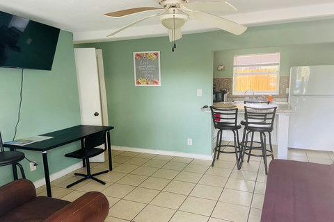 Discover the perfect 2-bedroom vacation rental in downtown Sarasota, FL! Private apartment with Queen & Full beds, Futon, high-speed Wi-Fi, Smart TV with HBO, fully equipped kitchen, and backyard with charcoal grill. Towels, beach chairs, and parking included. Centrally located near shops, Marina Bay, Lido Beach (5 mins), and Siesta Key (10 mins). Ideal for short-term or long-term stays, couples, families, groups, and LGBT travelers.