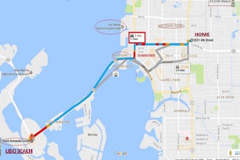 | Two bus routes within walking distance provide easy access to all Sarasota attractions, beaches, and downtown entertainment. |